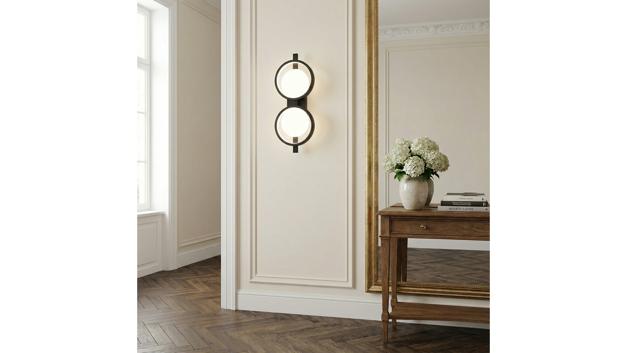 Une applique murale au design moderne et géométrique est une proposition élégante pour des intérieurs minimalistes et contemporains. La composition de deux cercles de tailles différentes crée un ensemble cohérent et décoratif, qui attire le regard et donne à l’aménagement un caractère affirmé. La finition noire souligne l’élégance et s’inscrit parfaitement dans les tendances déco actuelles.
