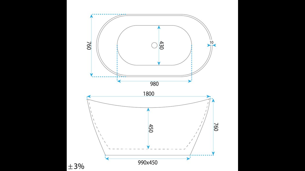 La baignoire est prévue pour une installation autoportante n’importe où dans la salle de bains. Réalisée en acrylique blanc de haute qualité, résistant aux rayures et aux chocs, elle garantit une durabilité remarquable. Grâce à un procédé de fabrication spécial, la surface est facile à entretenir et conserve son esthétique durant de nombreuses années.