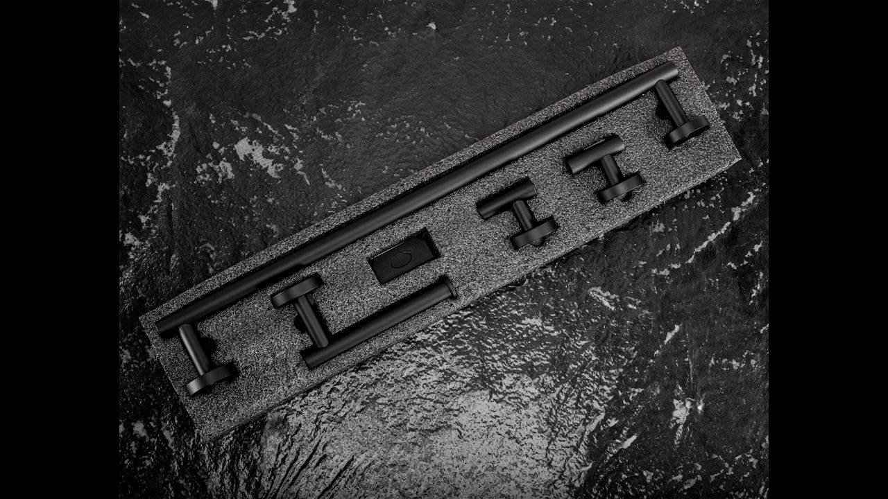 Tous les éléments sont fabriqués en métal de haute qualité, résistant à l’humidité et à la corrosion. La finition noire confère élégance et caractère affirmé tout en restant résistante aux marques d’usage. Les accessoires se fixent au mur, garantissant stabilité, durabilité et confort quotidien.