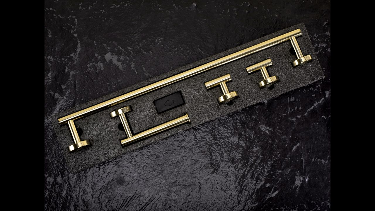 Tous les éléments sont fabriqués en métal de haute qualité, résistant à l’humidité et à la corrosion. La finition or à haut brillant ajoute élégance et prestige tout en conservant la durabilité et la résistance aux traces d’usage. Les accessoires se fixent au mur, garantissant stabilité, solidité et confort au quotidien.