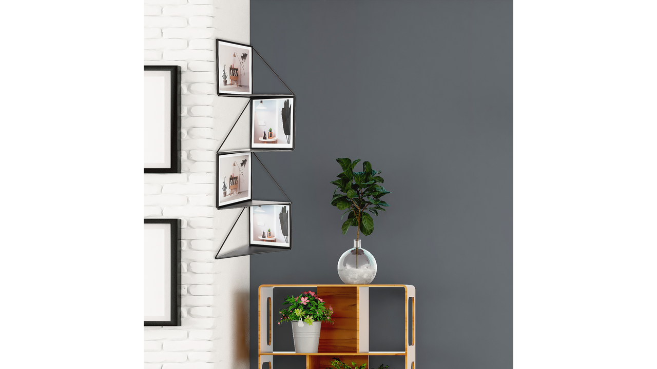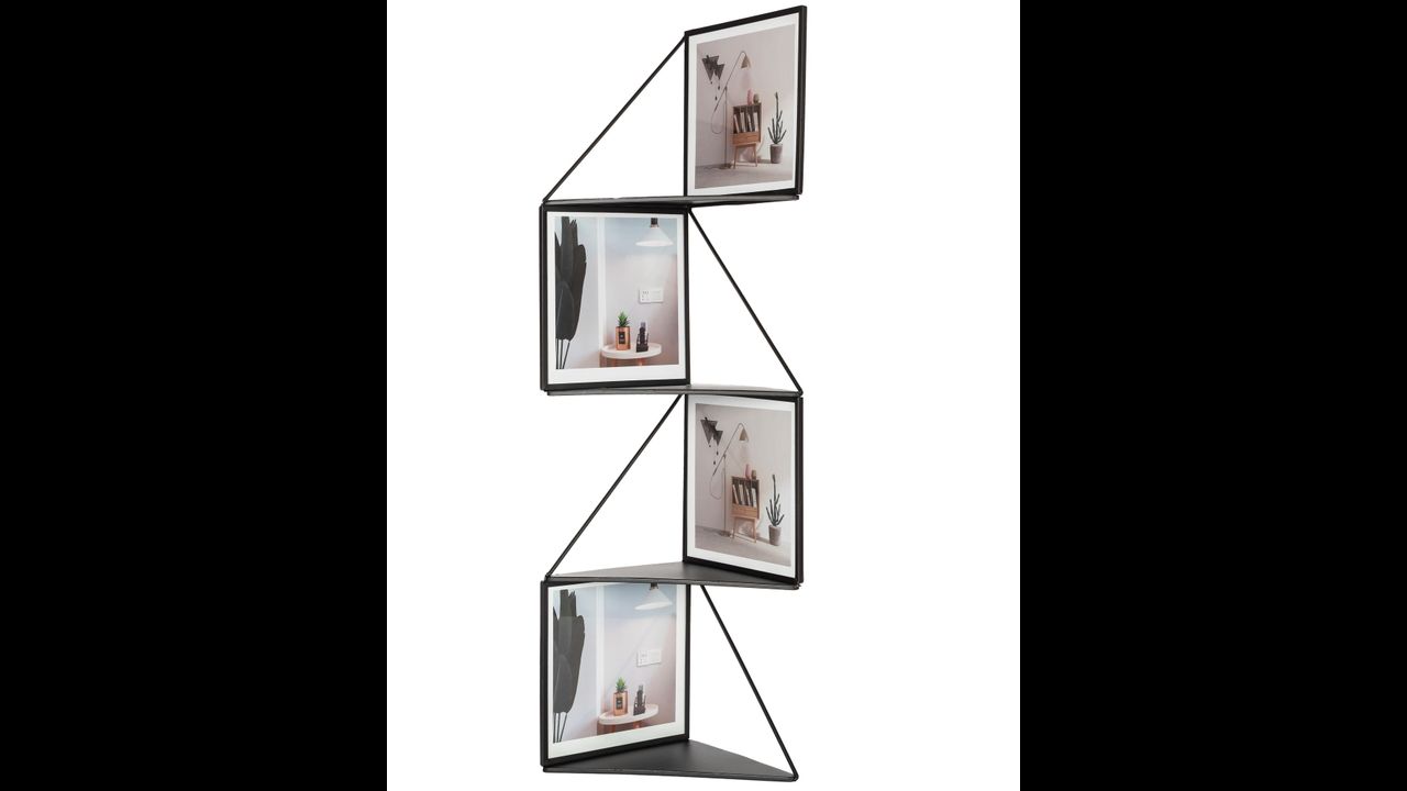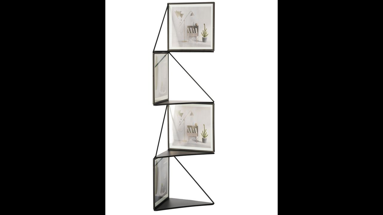 Prezentujemy Państwu wyjątkową półkę z ramkami umieszczonymi w ściankach półki. Regał przekonuje swoim nowoczesnym, ponadczasowym designem w czarnym kolorze, z ramkami na 4 zdjęcia w formacie 16 × 16 cm. Ta estetyka z pewnością sprawdzi się w nowoczesnych, minimalistycznych wnętrzach typu loft lub industrial.