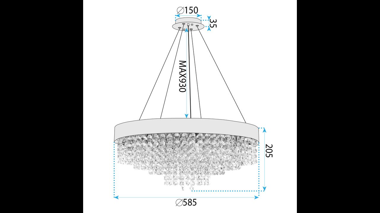 Le modèle est conçu pour 16 ampoules G9, garantissant un excellent éclairage même dans de grandes pièces. La présence de plusieurs points lumineux permet d’obtenir une lumière uniforme et intense, tout en conservant un effet décoratif grâce à l’habillage de type cristal.