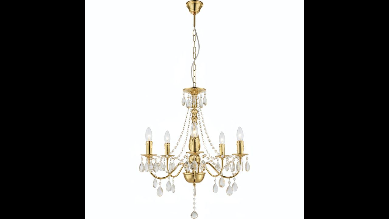 La lampe est idéale pour le salon, la salle à manger, le hall ou la chambre à coucher, où elle devient non seulement une source de lumière, mais aussi un élément décoratif raffiné. Grâce à sa disposition classique des bras et à ses chaînes et pendentifs décoratifs, ce modèle s’intègre parfaitement dans un intérieur glamour, classique ou contemporain avec une touche d’élégance.