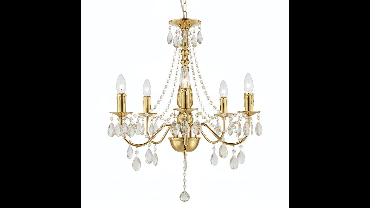 Le lustre suspendu élégant à cinq points lumineux est la parfaite alliance entre style classique et raffinement moderne. La structure métallique à finition chromée offre une base solide aux pendentifs décoratifs en matière synthétique, qui reflètent subtilement la lumière pour créer une atmosphère lumineuse unique.