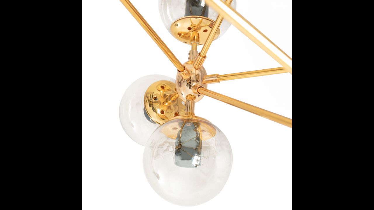 La lampe présentée est certainement un choix audacieux – il n’est pas difficile de remarquer que notre produit attire immédiatement l’attention. Cela est dû au nombre exceptionnel de bras surmontés d’un fil pour l’ampoule, ce qui signifie que la lampe peut alimenter jusqu’à dix points lumineux !