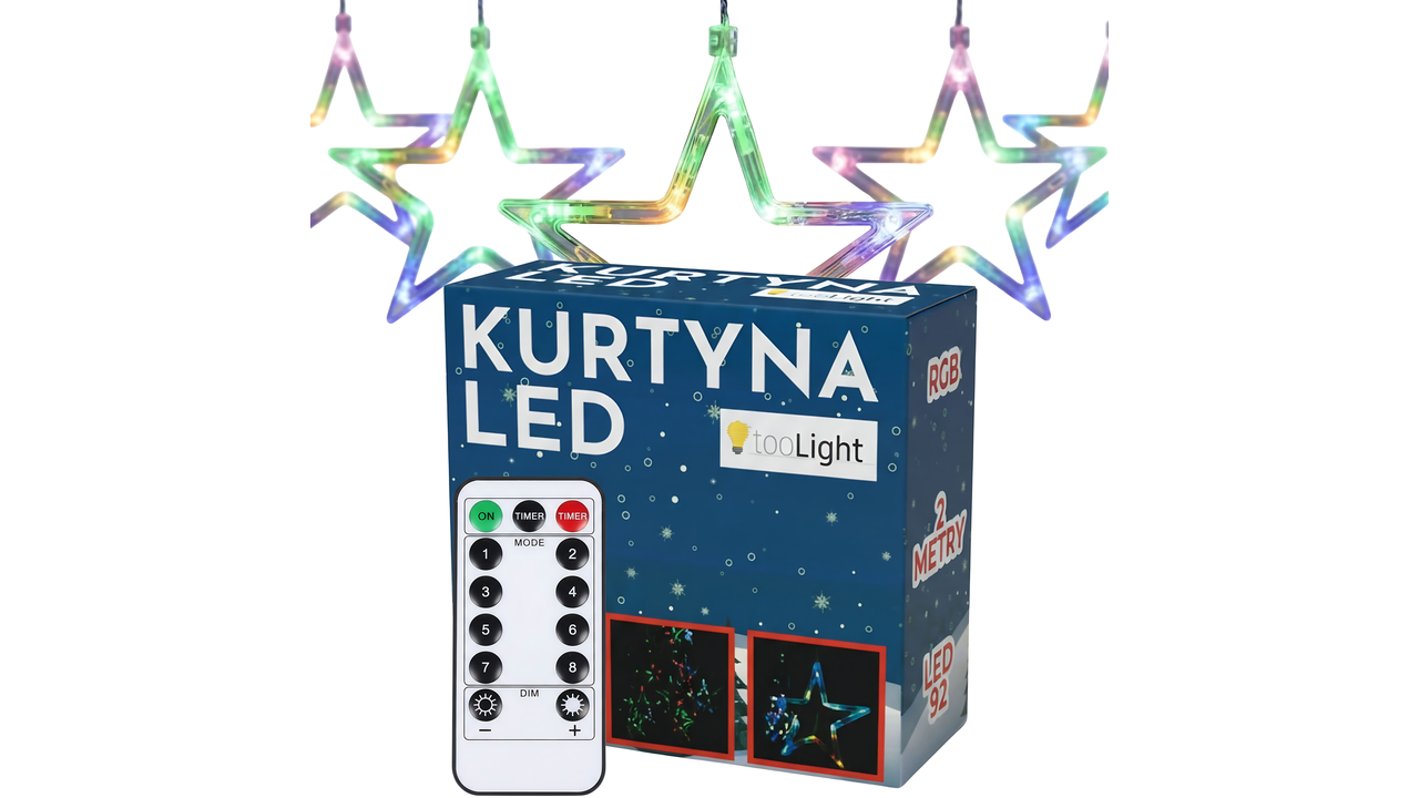 Do zestawu dołączony jest pilot zdalnego sterowania, umożliwiający włączenie oraz wyłączenie, rozświetlenie lub ściemnienie, a także tryby migotania/świecenia całej kurtyny.