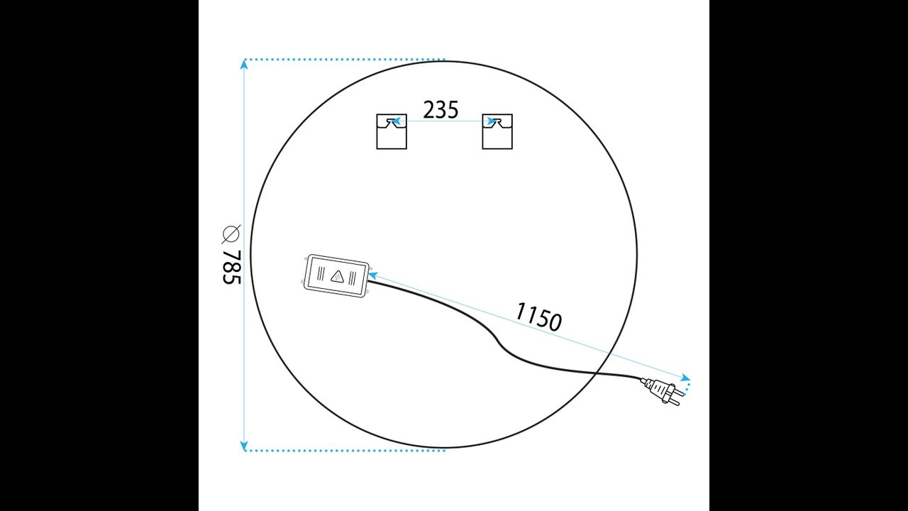 Le miroir est fait de matériaux de la plus haute qualité, est parfait et très durable. Il dispose d’un choix de trois couleurs de lumière LED qui peuvent être modifiées au toucher : chaude, neutre et froide, ainsi que d’une fonction de chauffage pour éviter la formation de buée sur la surface. L’interrupteur tactile situé dans la surface du miroir s’allume en bleu lorsque la fonction est active.