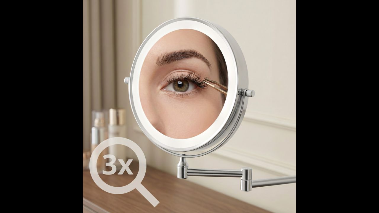Miroir cosmétique LED mural – une solution pratique et élégante, idéale pour la salle de bains, le dressing ou la coiffeuse. Ce modèle double face avec bras articulé est une aide indispensable pour le maquillage, le rasage et les soins de précision, alliant design moderne et grande fonctionnalité.
