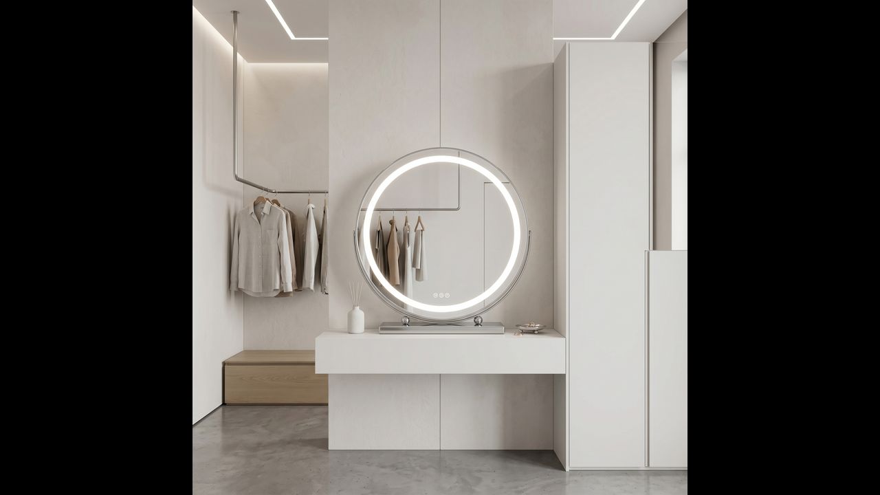 Appréciez le professionnalisme et le design moderne dans votre coin beauté grâce au Miroir cosmétique LED Make-Up Chrome d’un diamètre de 50 cm. C’est l’alliance parfaite du style et de la fonctionnalité, qui ravira toute personne à la recherche d’un éclairage parfait pour les soins quotidiens et le maquillage. Fabriqué avec les meilleurs matériaux, le fini blanc brillant ne soulignera pas seulement la décoration de votre coiffeuse, maia assurera également fiabilité et confort d’utilisation au quotidien.