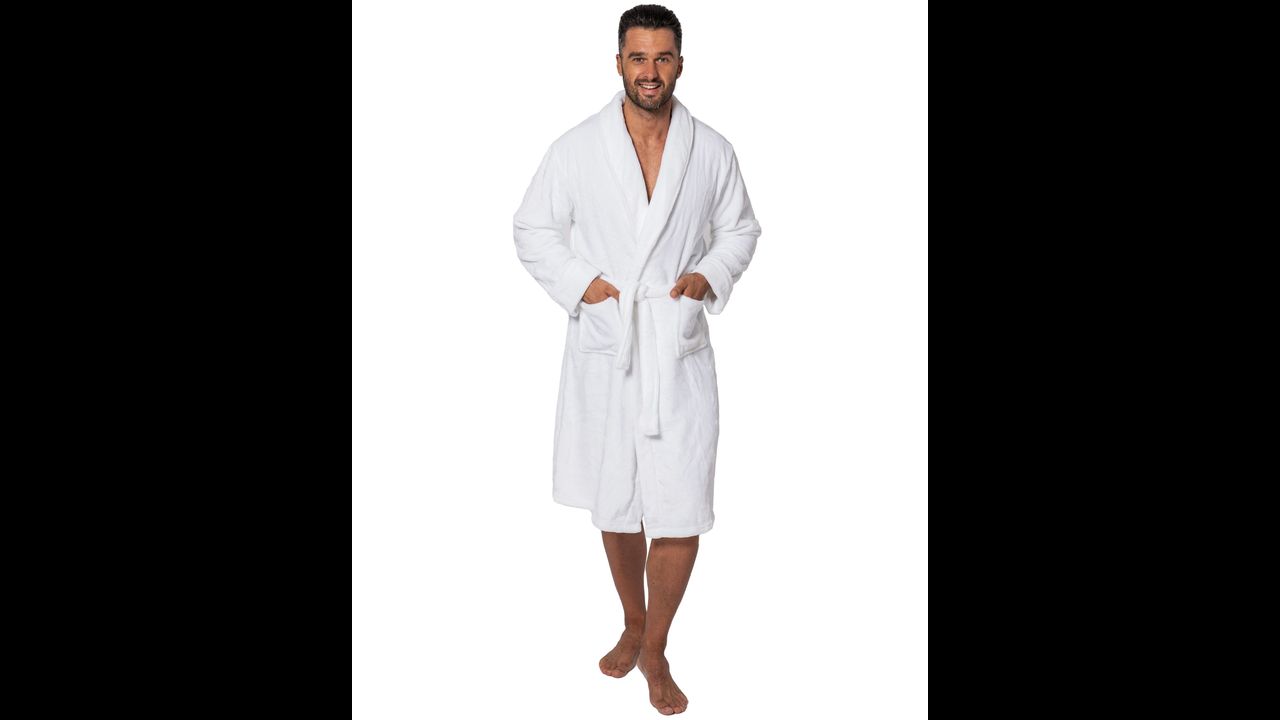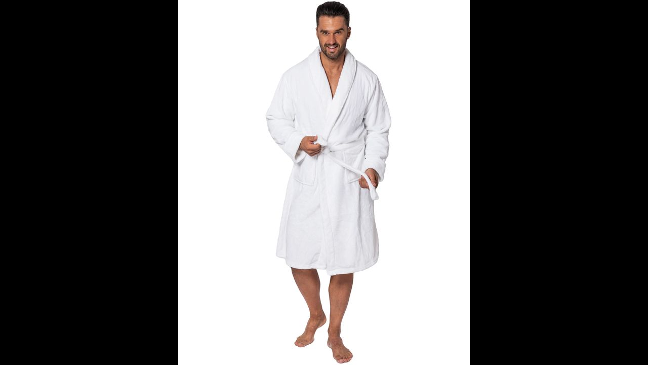 Miękki, pluszowy szlafrok. Idealny towarzysz chłodnych poranków i długich wieczorów. Długość do kolan sprawi, że świetnie się sprawdzi szczególnie jesienią i zimą. Dołączony do szlafroka pasek pozwala regulować jego szerokość.