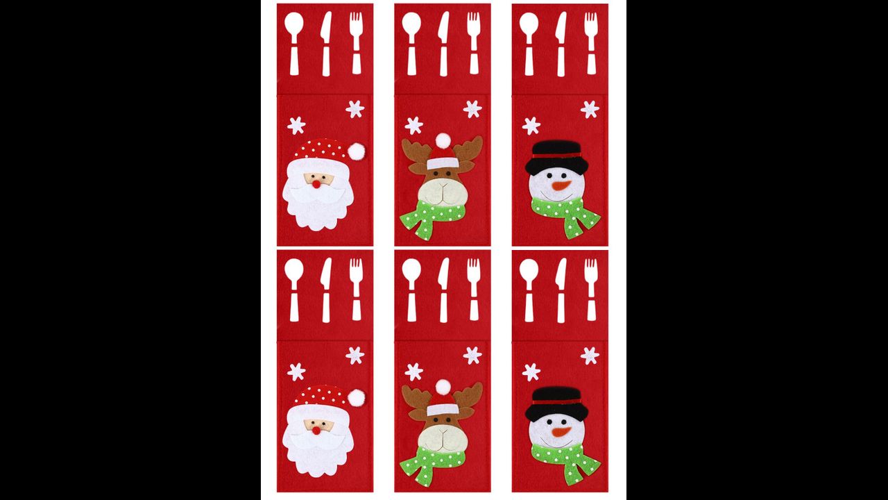 Piękne dekoracyjne pokrowce na sztućce z motywem Mikołaja, Bałwanka i Renifera. Wspaniała dekoracja stołu w świątecznym okresie. Pokrowce na sztućce z serii świątecznej sprawią, że Boże Narodzenie będzie jeszcze piękniejsze.