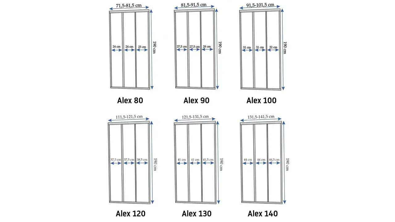 La porte Alex se compose d’un élément fixe et de deux éléments coulissants.