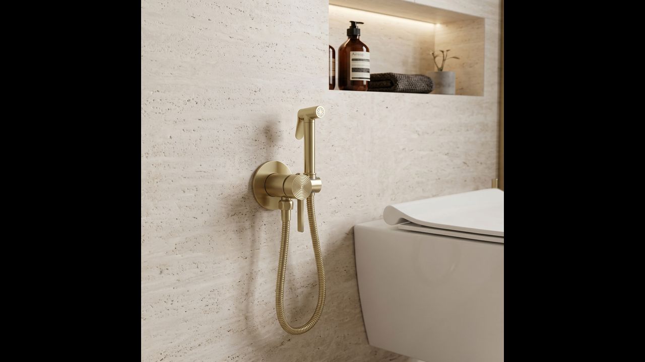 Le mitigeur de bidet avec douchette hygiénique Foster de couleur Brushed Gold est une solution moderne et extrêmement fonctionnelle qui introduit le plus haut niveau d’hygiène dans l’espace toilettes. Sa conception encastrée réfléchie et ses détails uniques en font un accent élégant dans les agencements modernes.