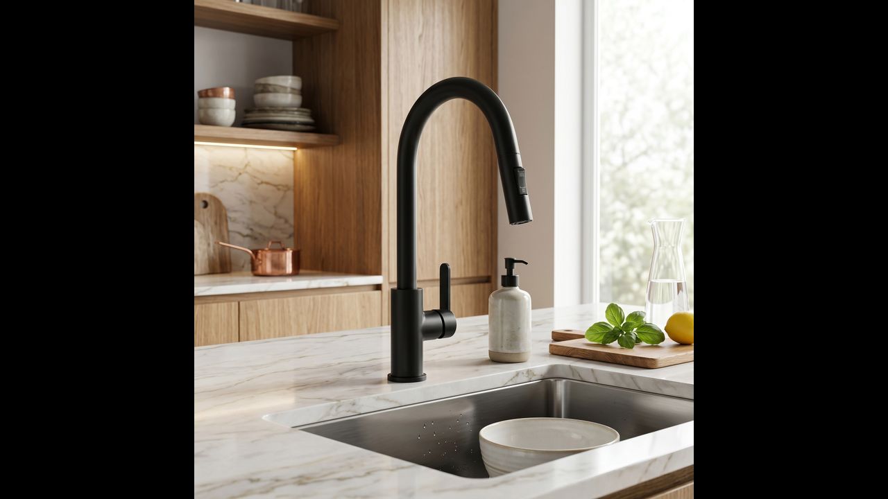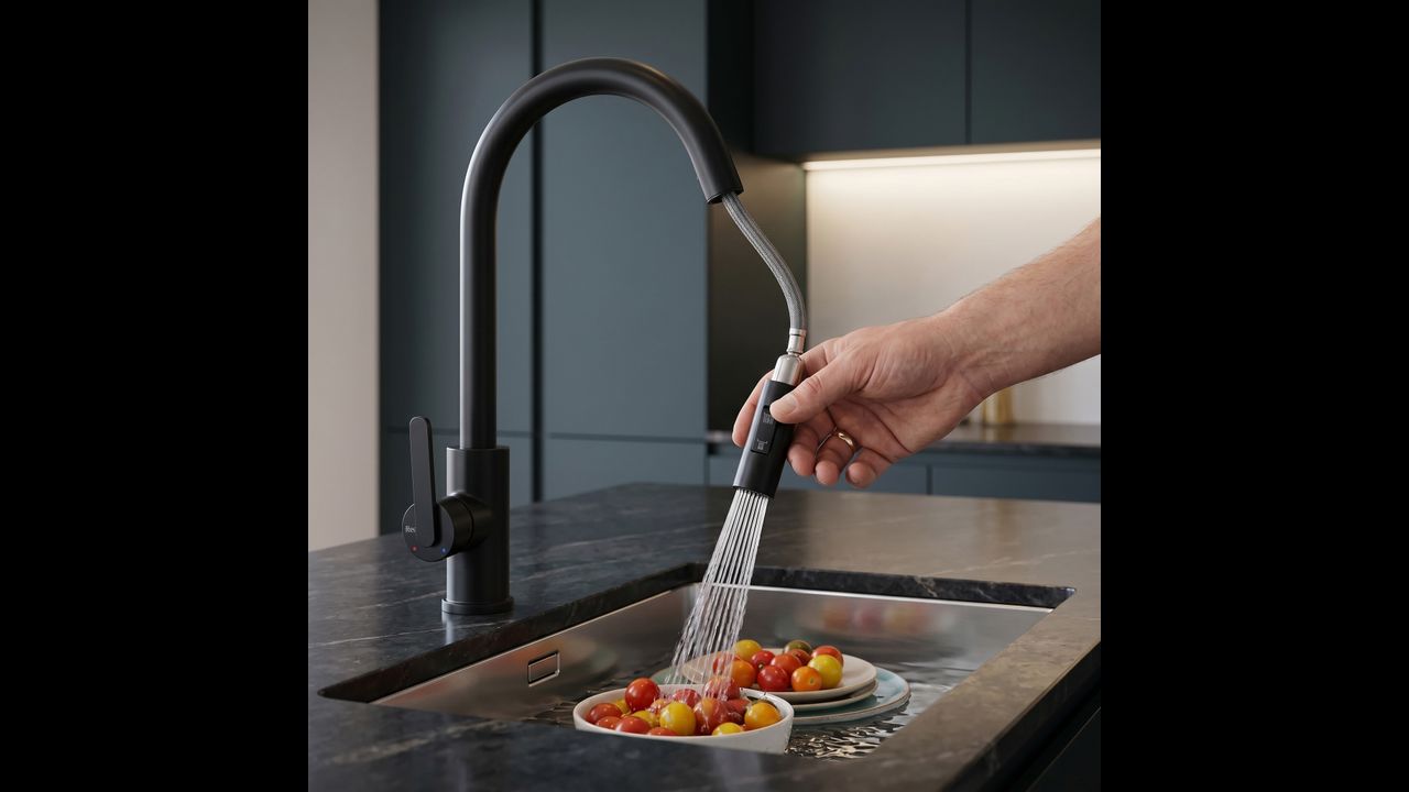 Le mitigeur de cuisine Ontario en noir mat profond allie ergonomie moderne et design affirmé. Conçu pour le confort quotidien, il constitue un élément élégant et pratique pour la cuisine contemporaine.