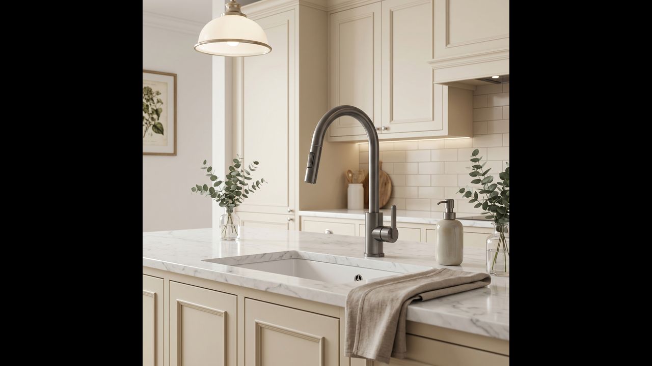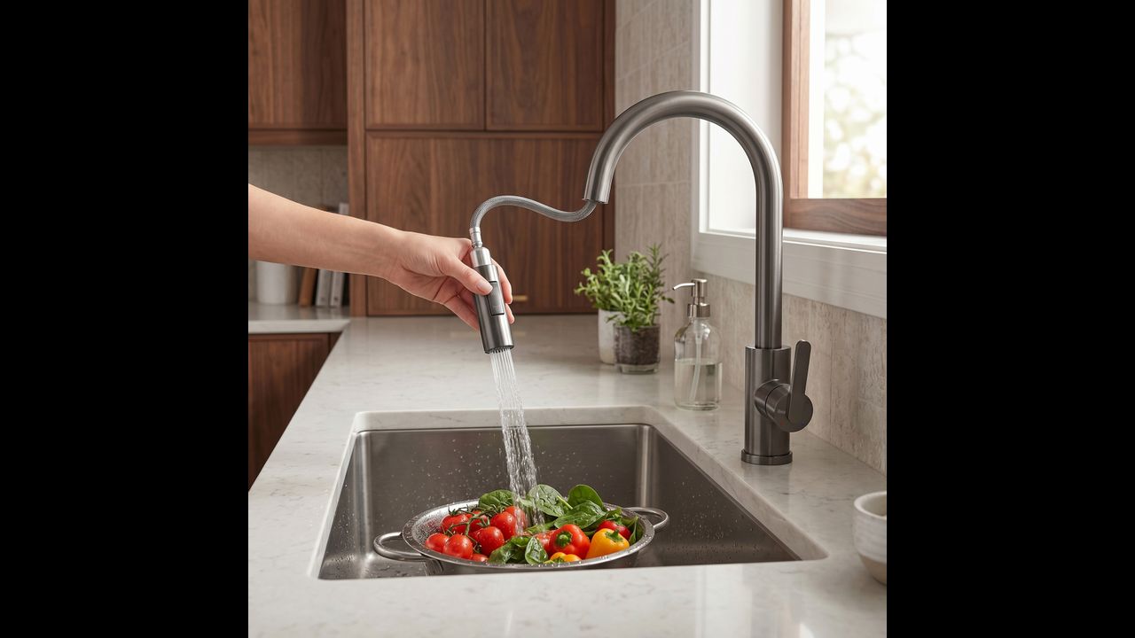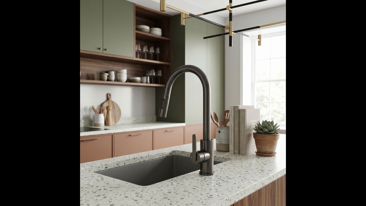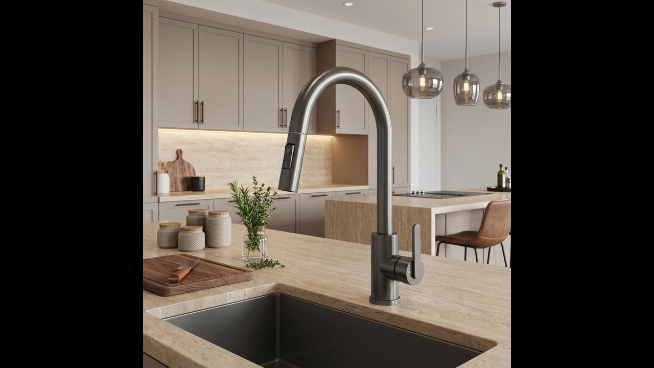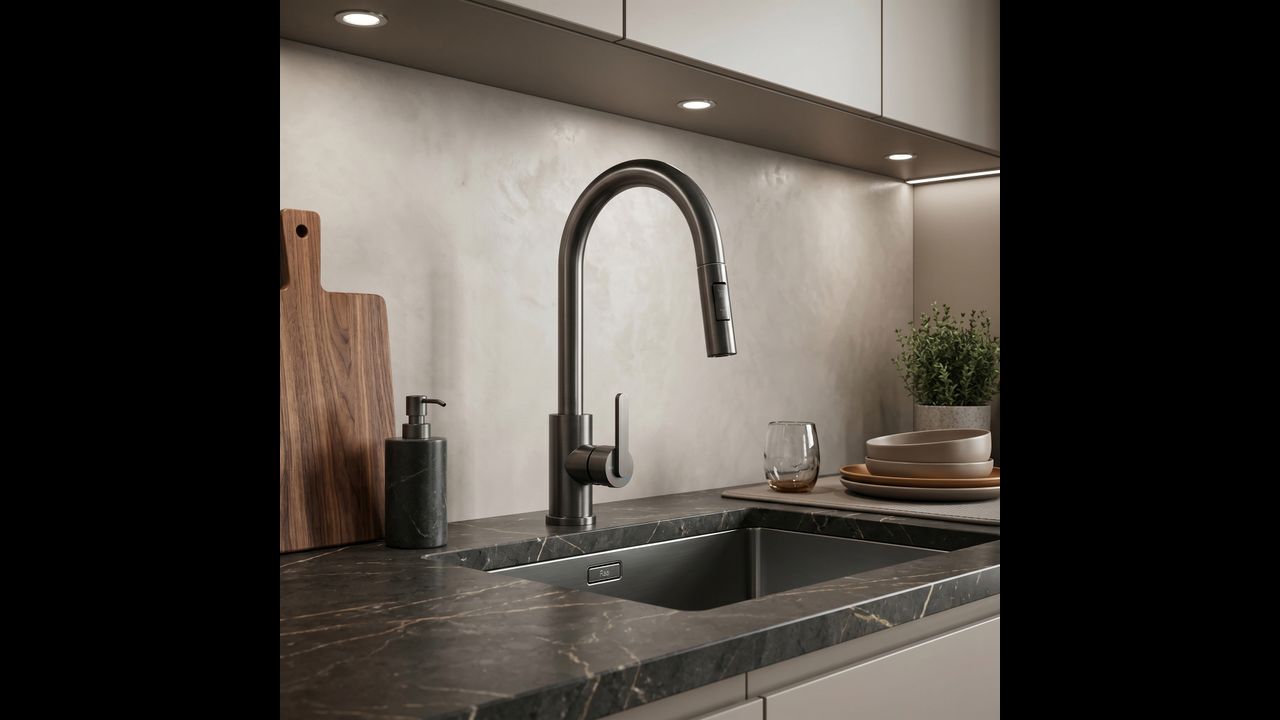 Le mitigeur de cuisine Ontario en titane allie ergonomie moderne et design industriel brut. Conçu pour le confort quotidien, il constitue un élément élégant et pratique pour la cuisine contemporaine.