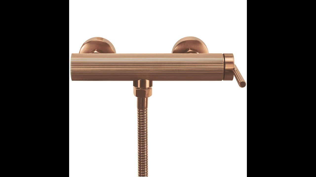 Le mitigeur de douche Argon est une solution élégante et moderne, caractérisée par la finition rainurée de son corps. Son design unique en cuivre brossé met parfaitement en valeur la salle de bains, ajoutant style et caractère distinctif.