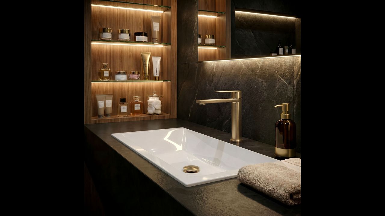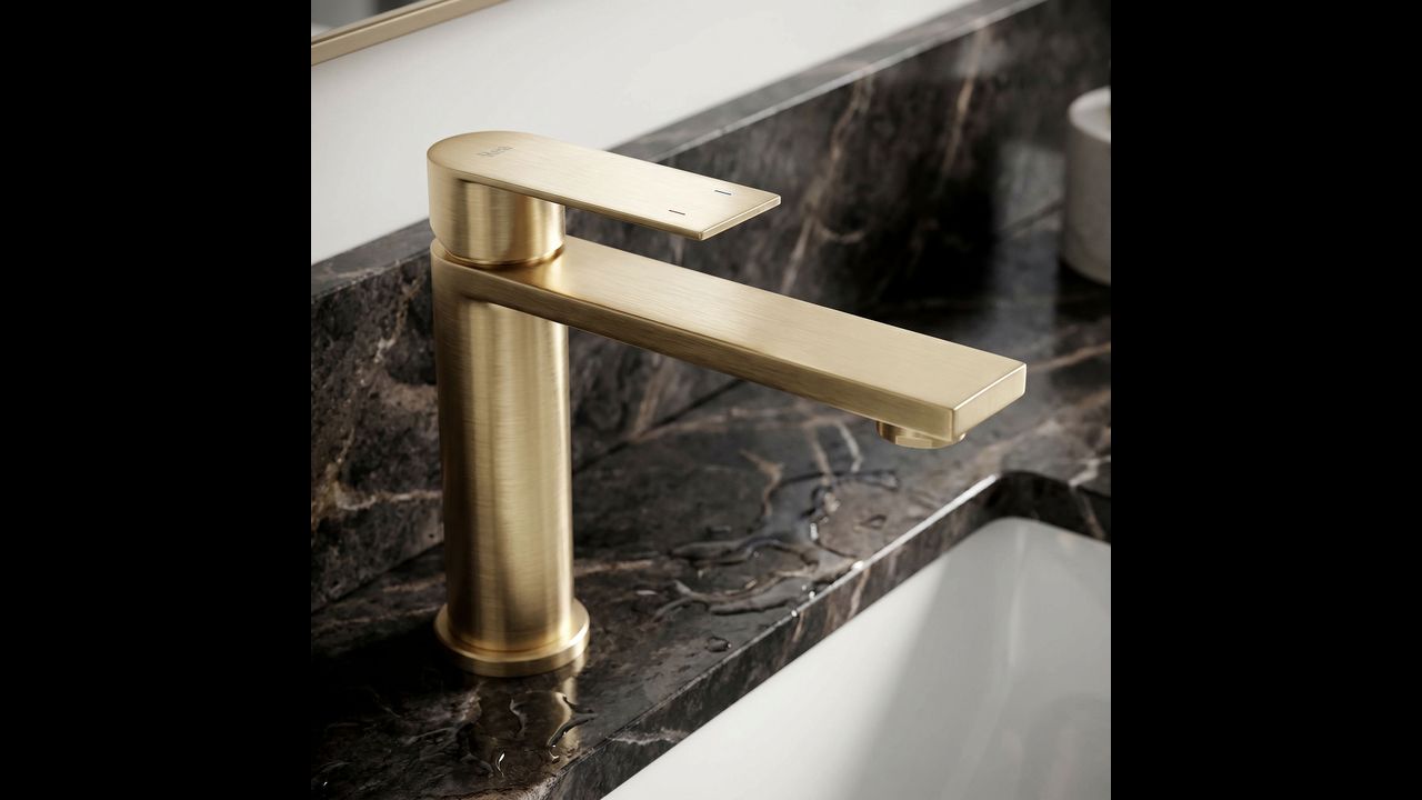 Le mitigeur de lavabo bas Hunter en couleur or brossé associe une forme minimaliste à une grande fonctionnalité. Grâce à sa construction basse, c’est un modèle idéal pour les lavabos à poser sur plan, sous plan ainsi que ceux dotés d’un trou d’usine pour la robinetterie.