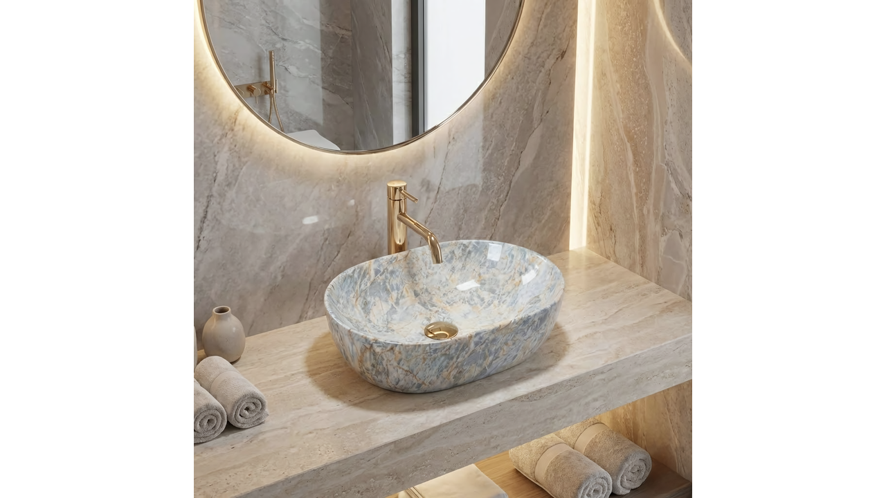 Choisissez le lavabo à poser Rea Amelia 48 Ruststone si vous recherchez une céramique au fini atypique. Ce modèle associe une forme ovale classique à une surface qui imite la pierre naturelle. Fabriqué en céramique sanitaire durable, il constitue un élément fonctionnel et esthétique pour la salle de bains.