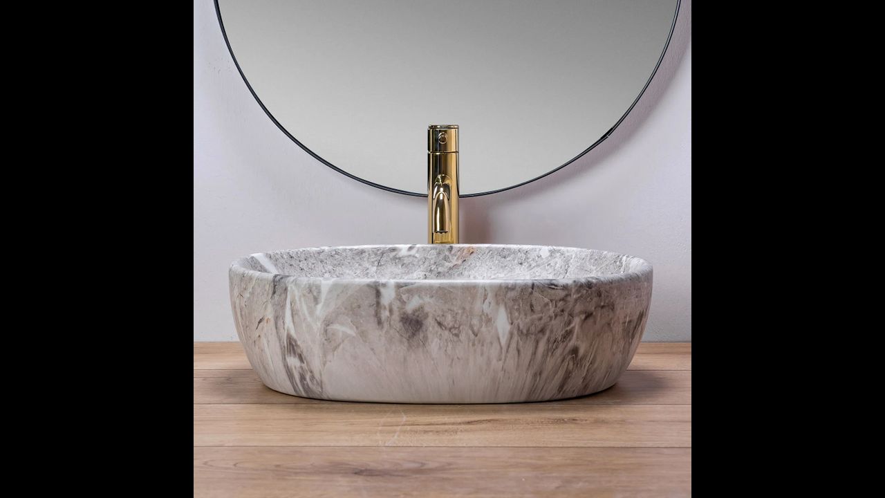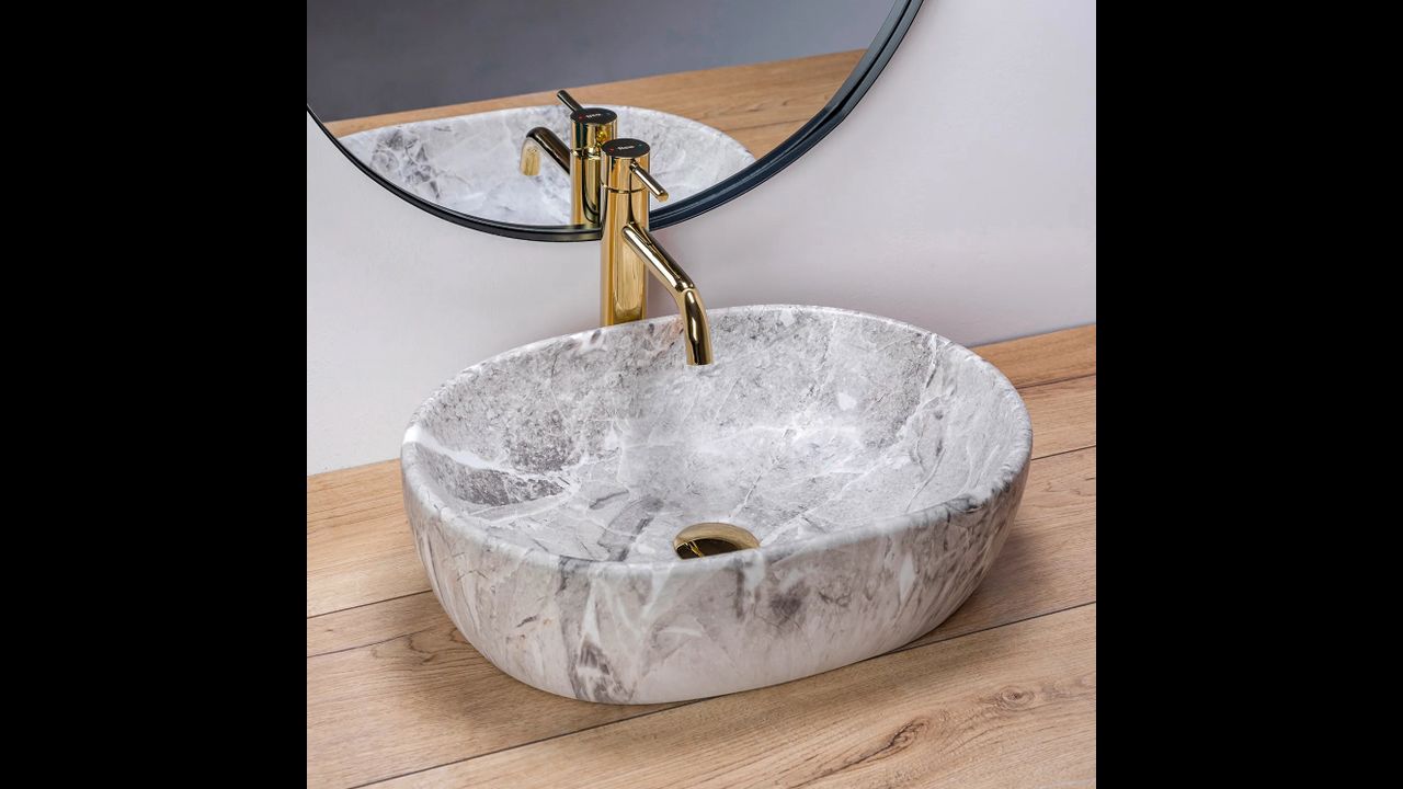 Un magnifique lavabo imitant la pierre – LARA Stone. Grâce à la technique selon laquelle la couche supérieure du lavabo a été réalisée, chaque pièce présente un motif unique et inimitable. L’effet obtenu imite la pierre naturelle.