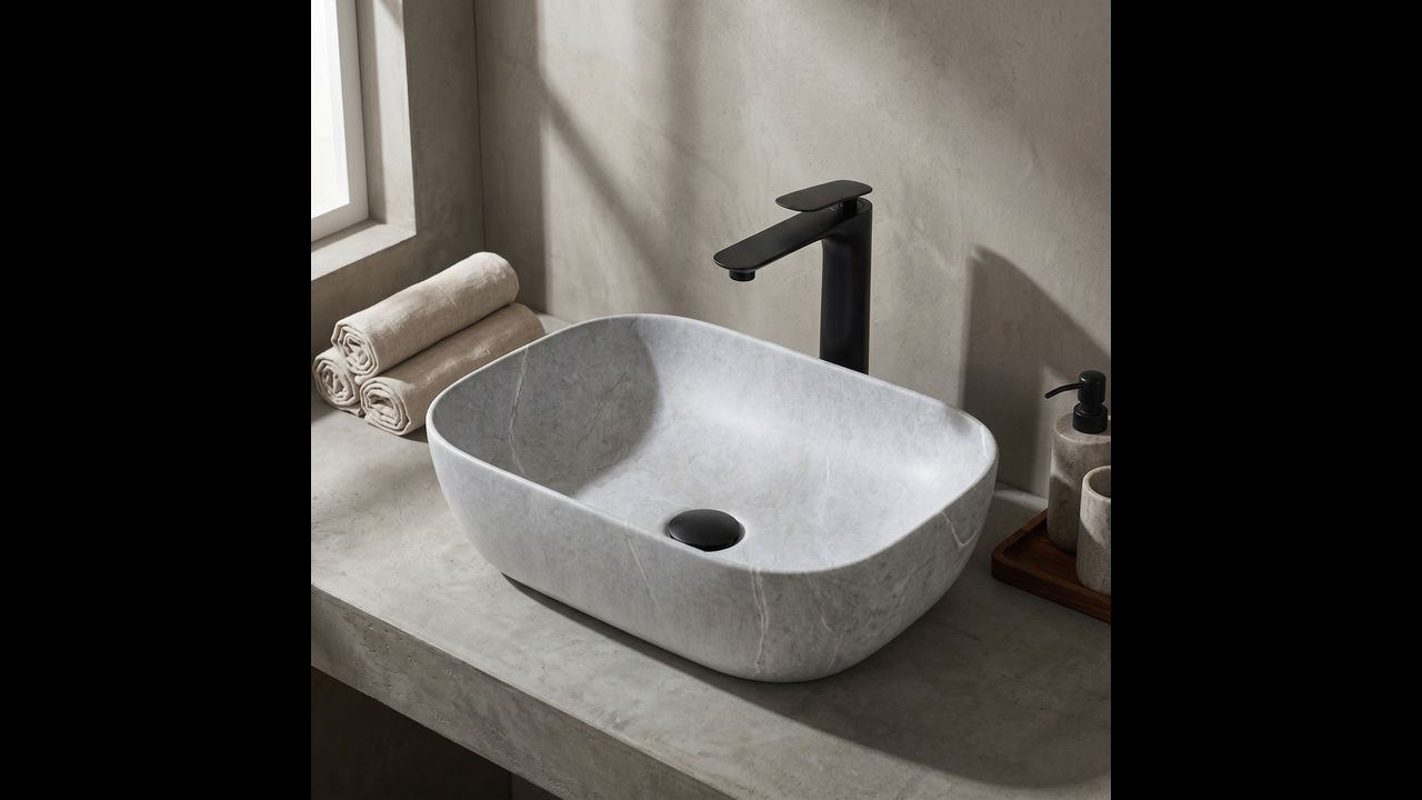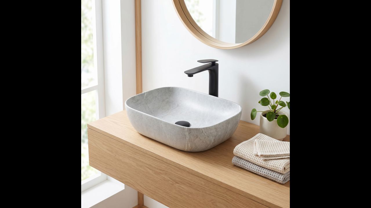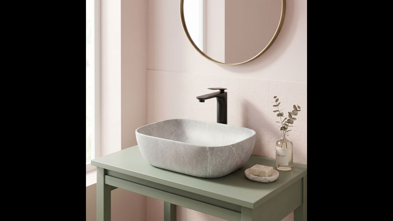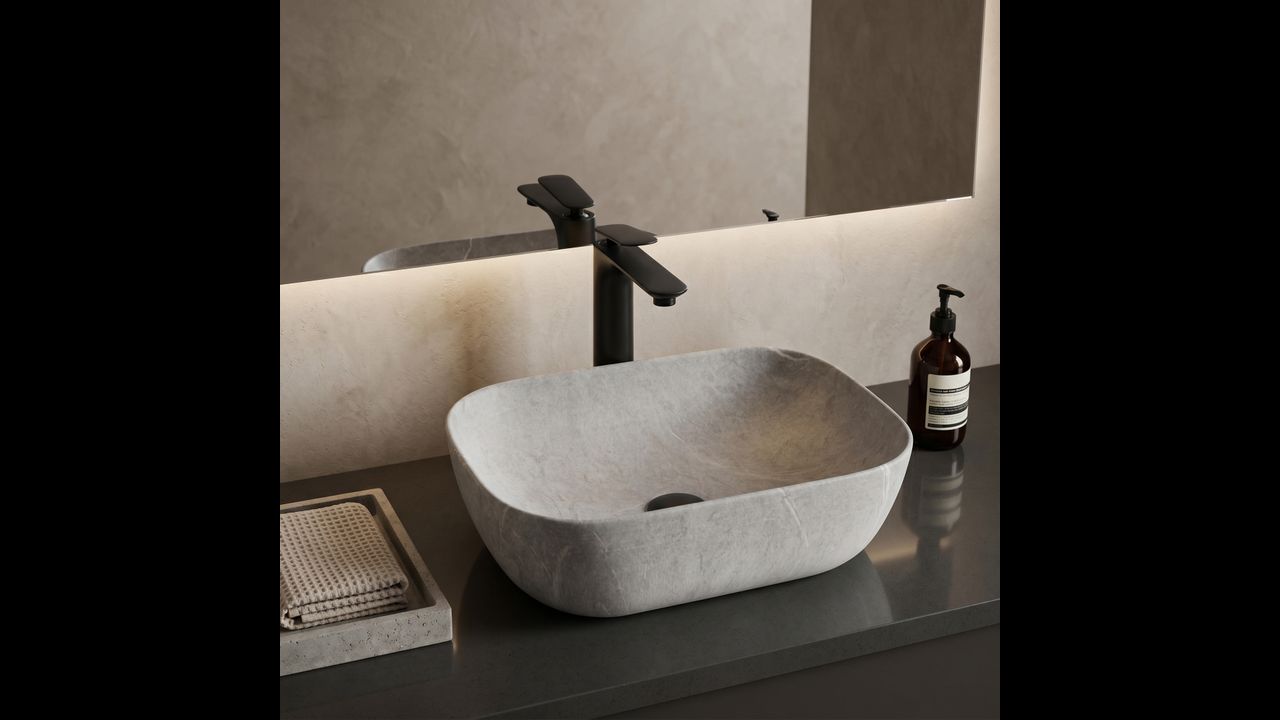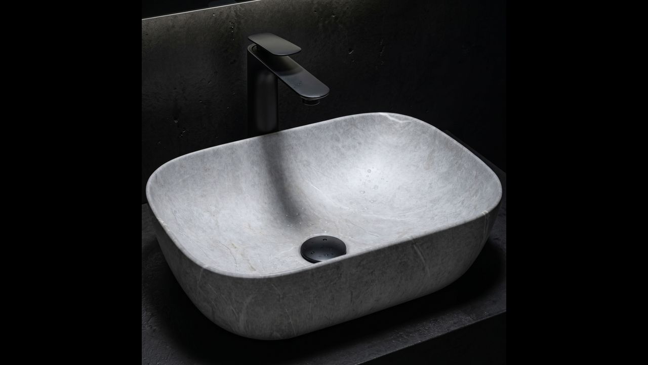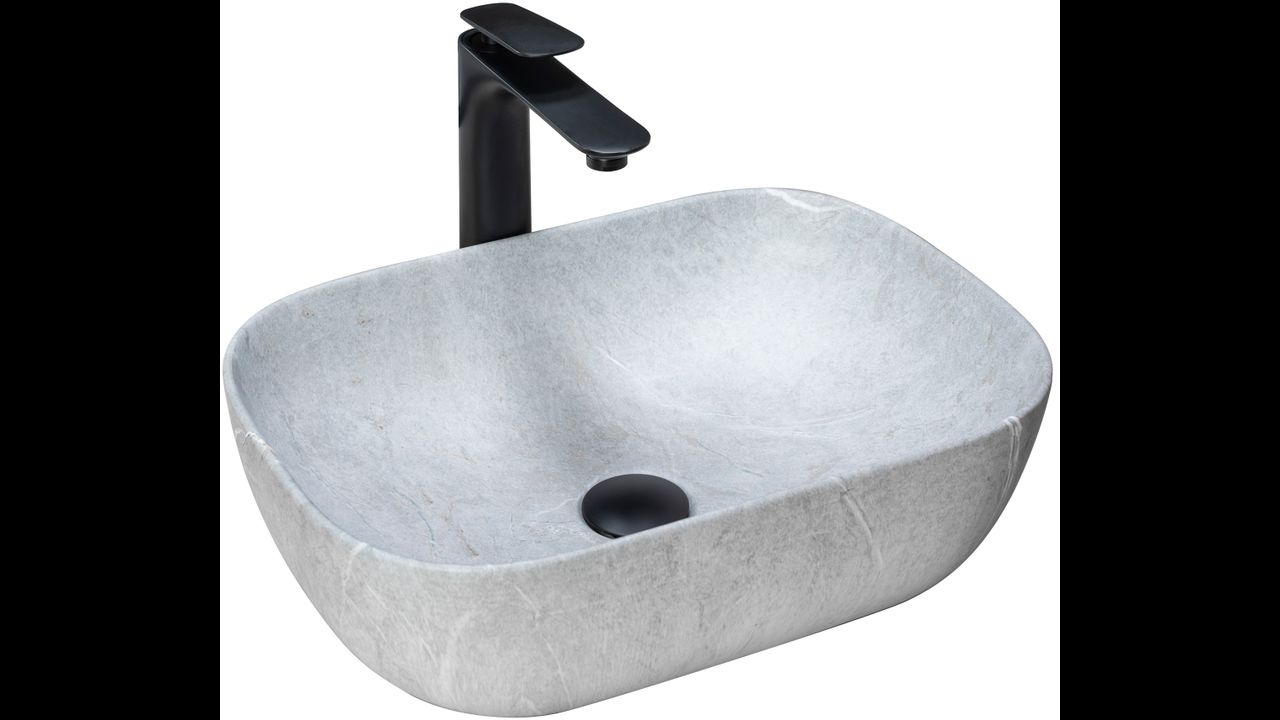 Un magnifique lavabo imitant la pierre – Livia Grey. Grâce à la technique selon laquelle la couche supérieure du lavabo a été réalisée, chaque pièce présente un motif unique et inimitable. L’effet obtenu imite la pierre naturelle.