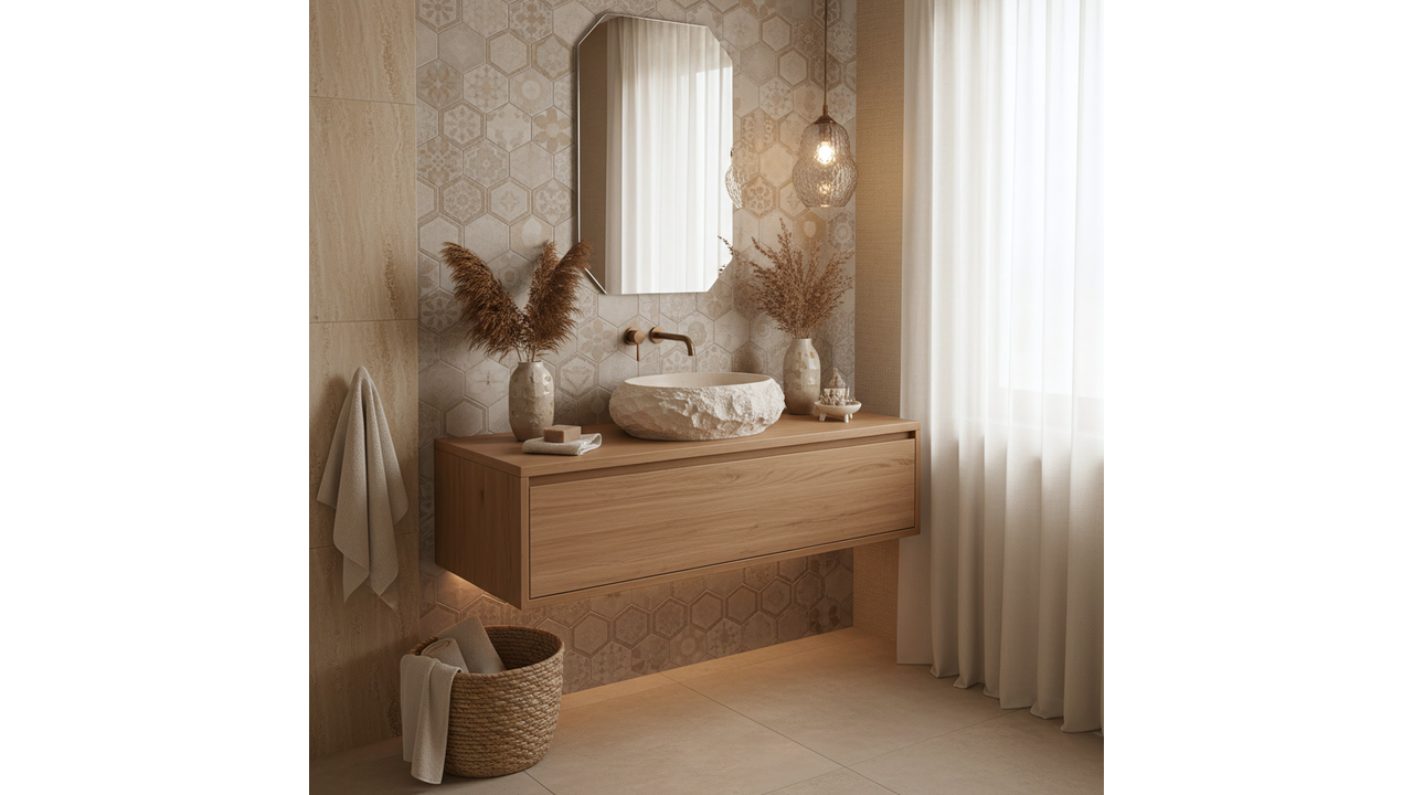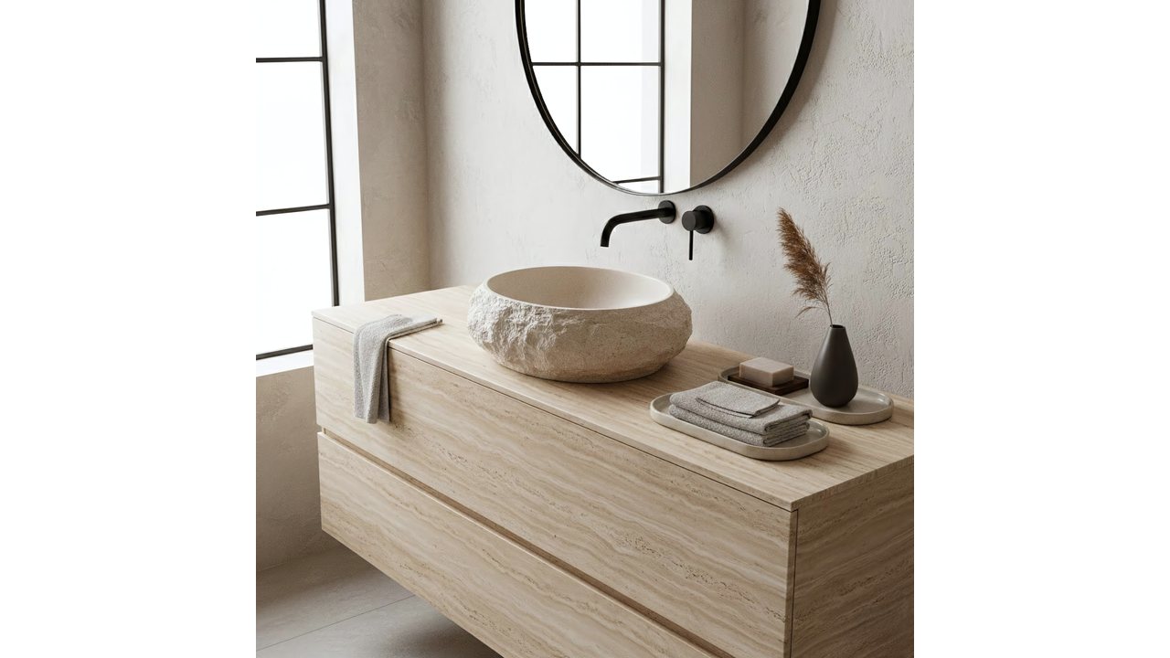 Le lavabo Rea Mika Warm Beige est un choix idéal pour des aménagements de style bohème, méditerranéen ou organique. Sa teinte beige claire et sa texture minérale en font un élément à la fois chaleureux et expressif de l’équipement.
