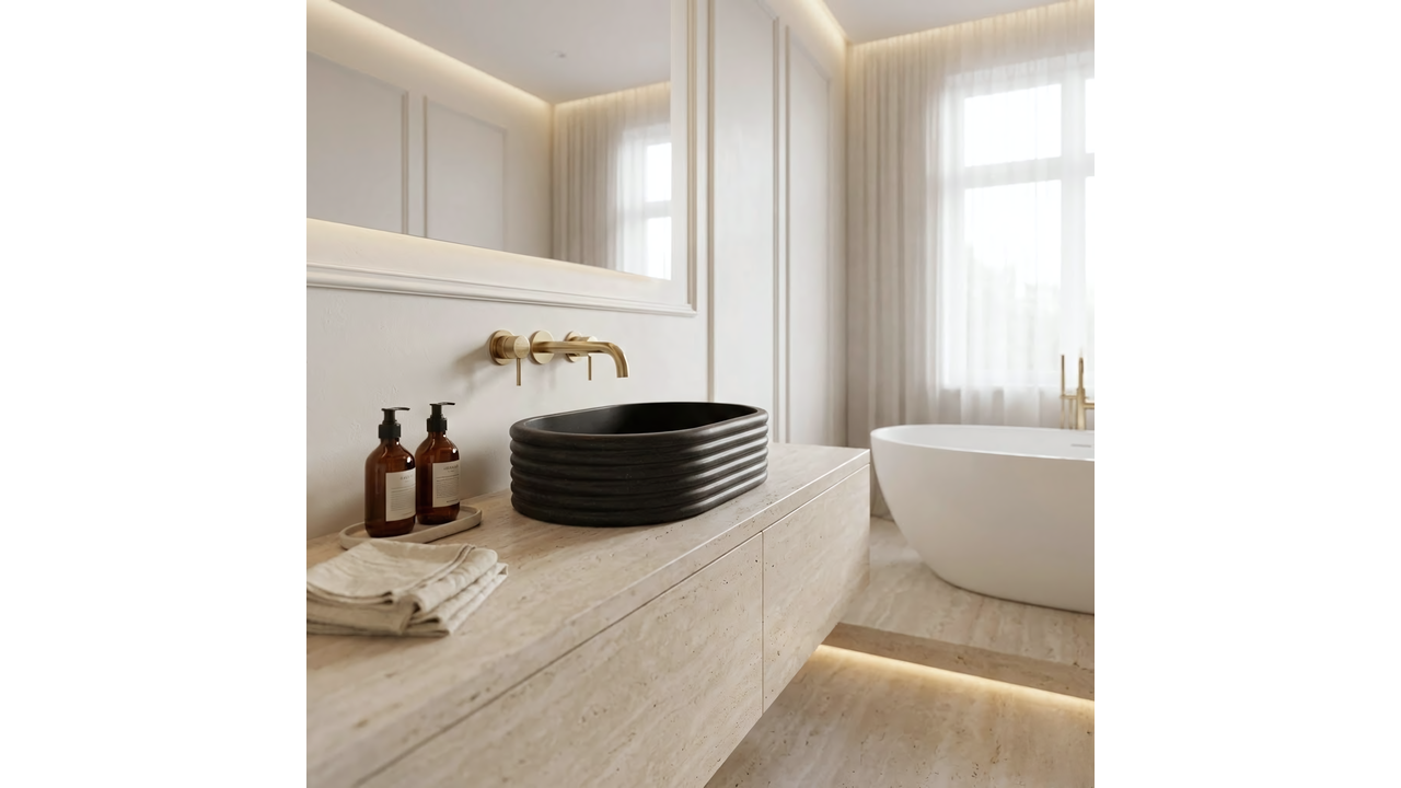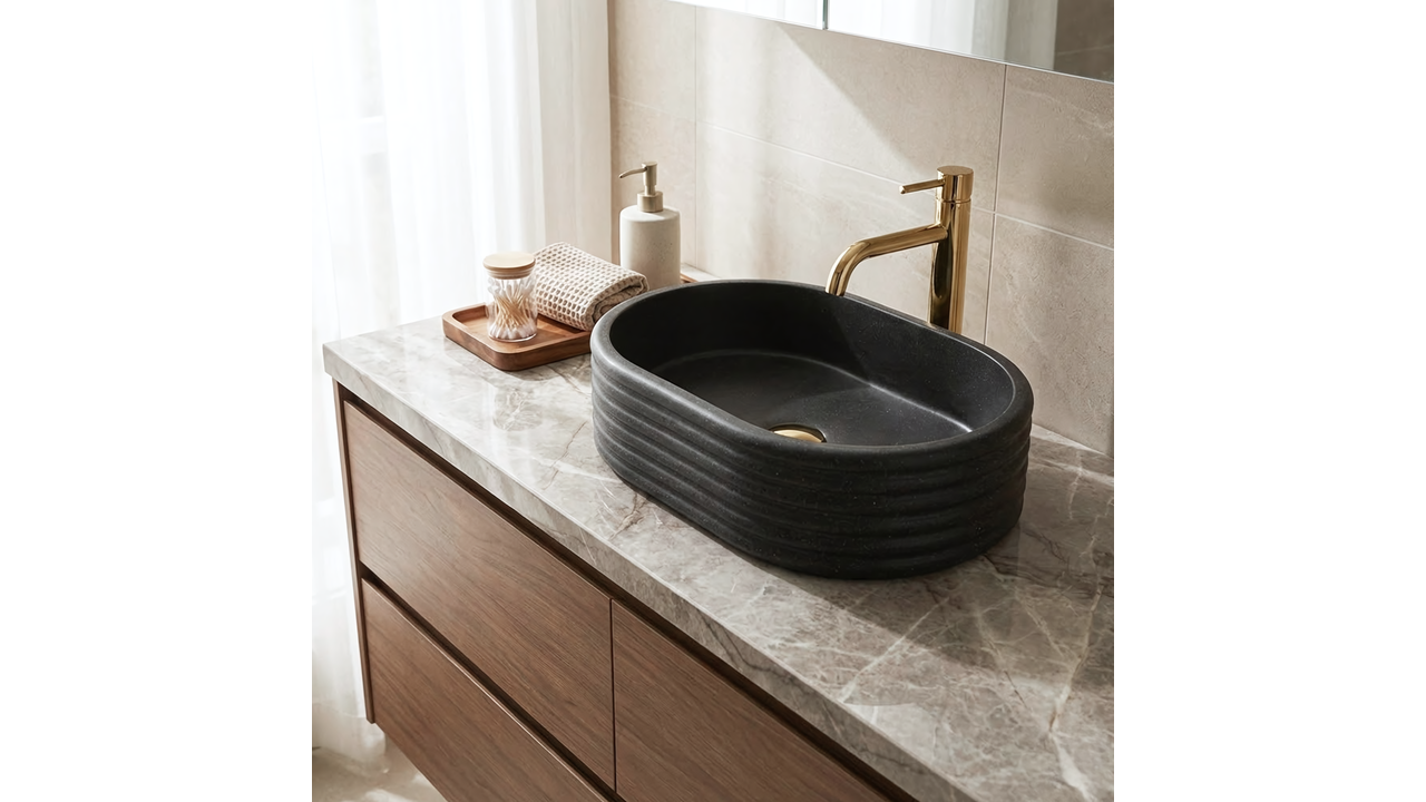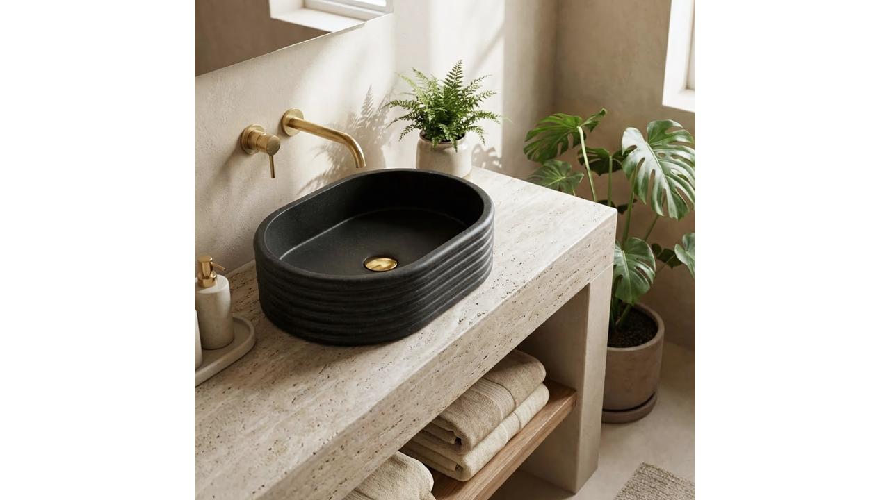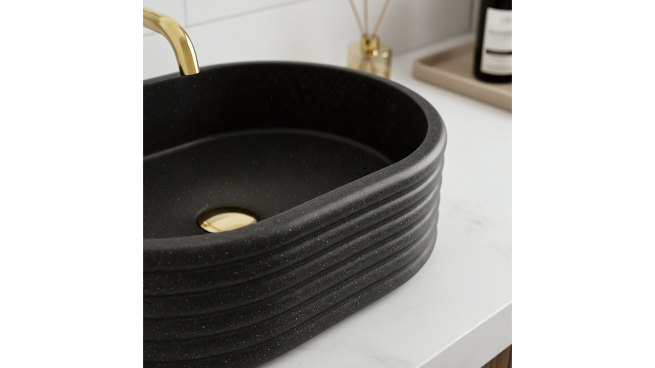 La vasque Rea Nicoletta Black est une excellente proposition pour les salles de bains de style industriel, loft ou contemporain. Sa couleur sombre et sa texture horizontale créent un point focal fort et graphique dans l’espace lavabo.