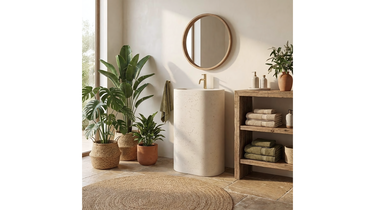 Apportez à votre salle de bains une ambiance brute et industrielle avec le lavabo sur pied Rea Salento. Ce modèle monolithique, fabriqué en composite extrêmement durable Artificial Stone, séduit par une finition qui imite le béton architectural. C’est la solution idéale pour les amateurs de style loft, alliant design épuré et fonctionnalité moderne.